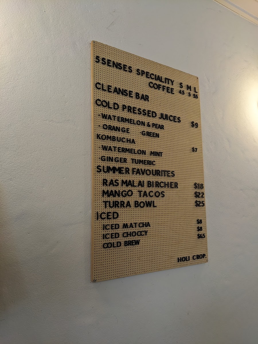 The menu at Holi Crop offers a variety of options suitable for breakfast, light meals, and casual dining occasions. It includes a well-rounded selection of beverages such as specialty coffee drinks like Flat White, Cappuccino, Black Coffee, Dirty Chai, and Masala Chai Tea. Fresh fruit juices, cold-pressed juices, and kombucha are also available, providing cold beverage alternatives.